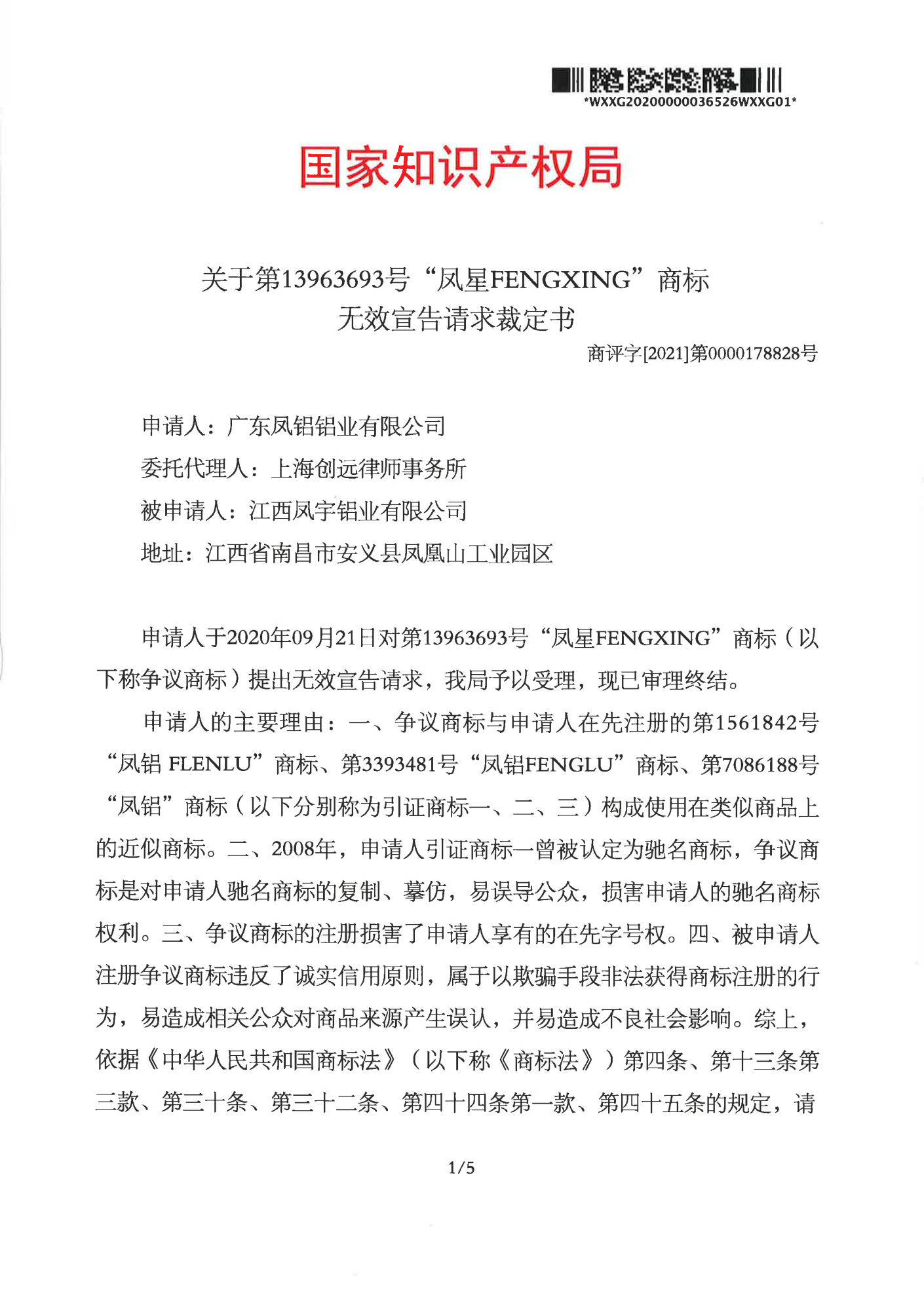 巴彦淖尔辉知队 | 国家知识产权局:“凤星”商标无效