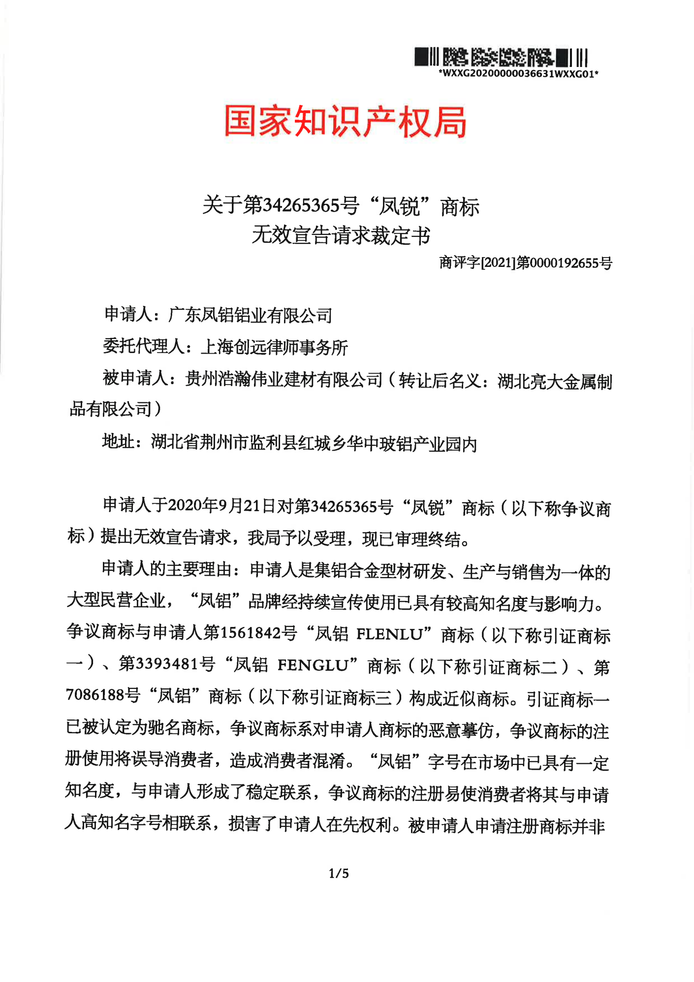 巴彦淖尔辉知队 | 国家知识产权局:“凤锐”商标无效